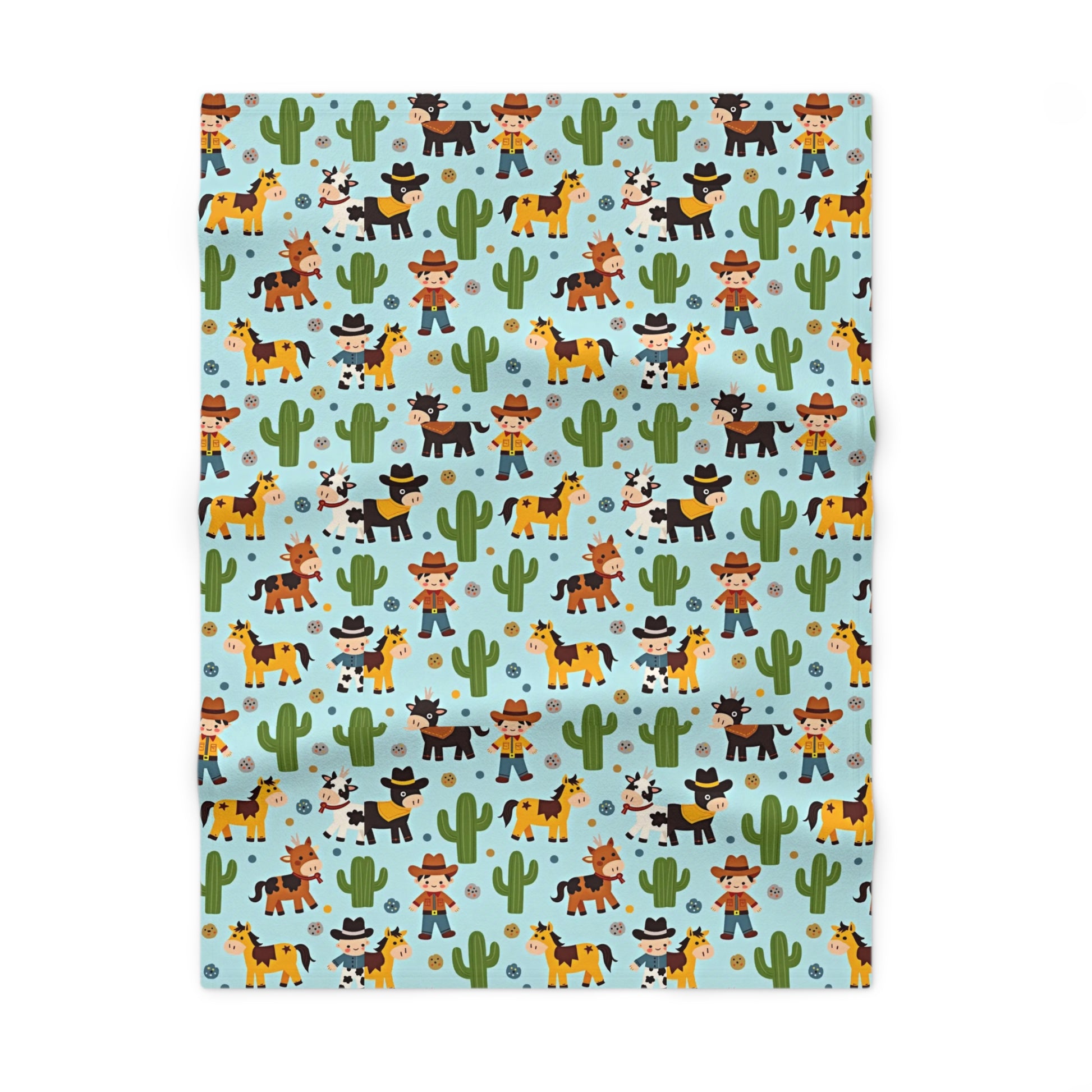 Introduce a touch of warmth and charm to your baby's environment with this Soft Fleece Baby Blanket. Designed for little ones, this cozy blanket features an adorable cowboy theme that brings a playful vibe to nurseries or playrooms. Its vibrant colors and delightful pattern create an inviting atmosphere, making it perfect for snuggling during storytime or nap time. Ideal for parents seeking comfort and style for their babies, this blanket is a must-have for baby showers, first birthdays, or festive holidays. Enjoy the joy it adds to your family moments, while also making a thoughtful gift for new parents!
