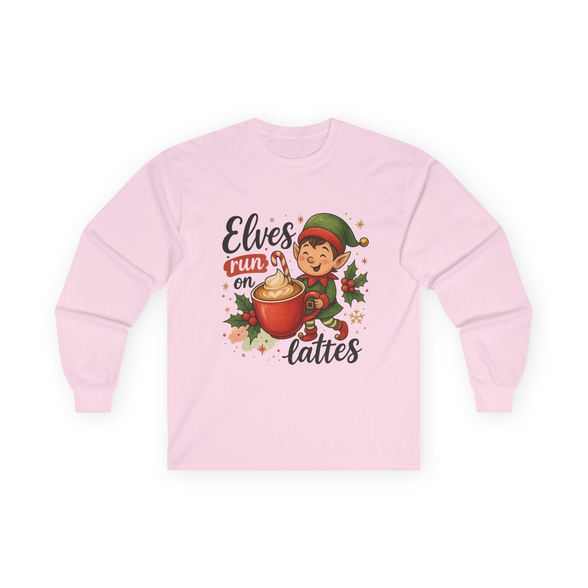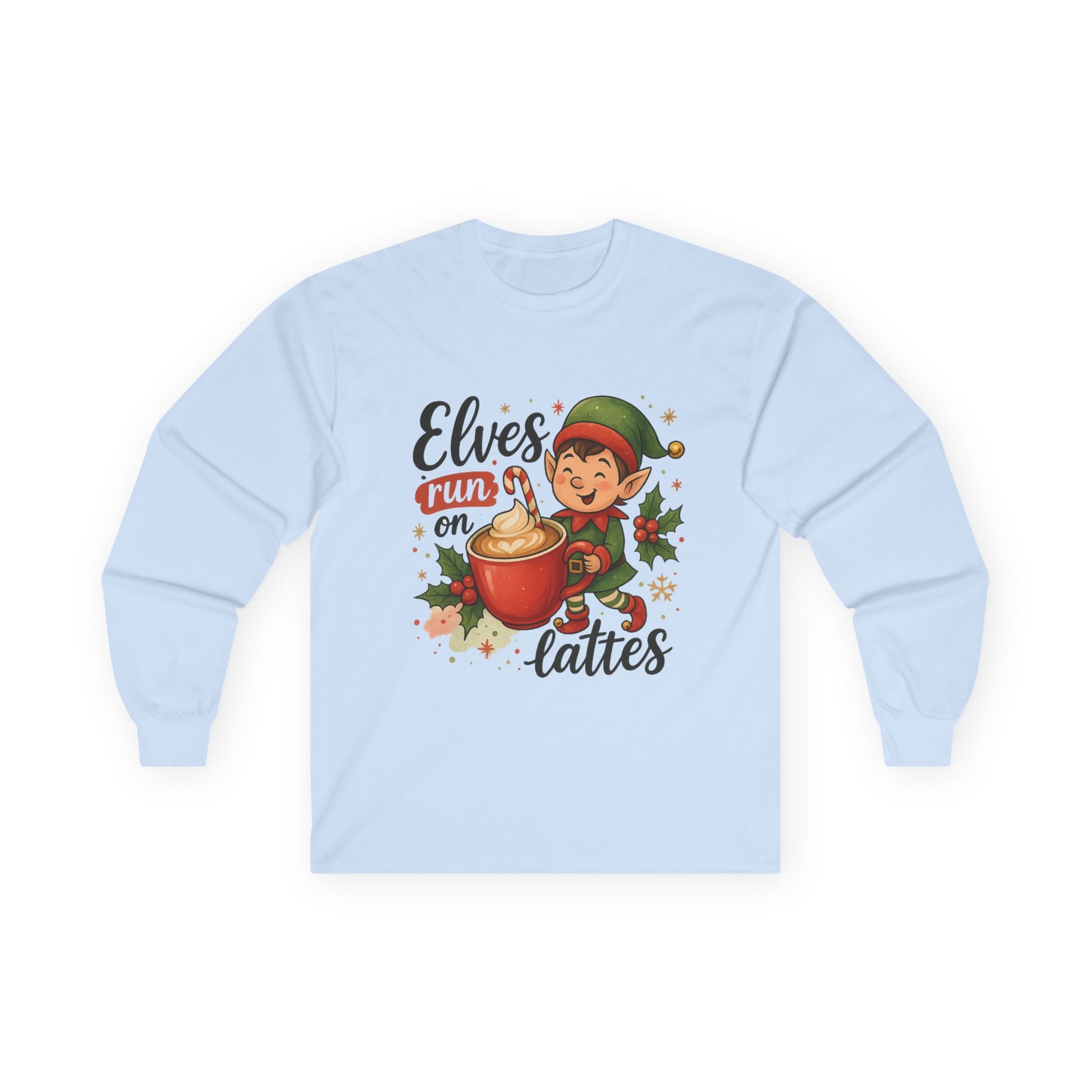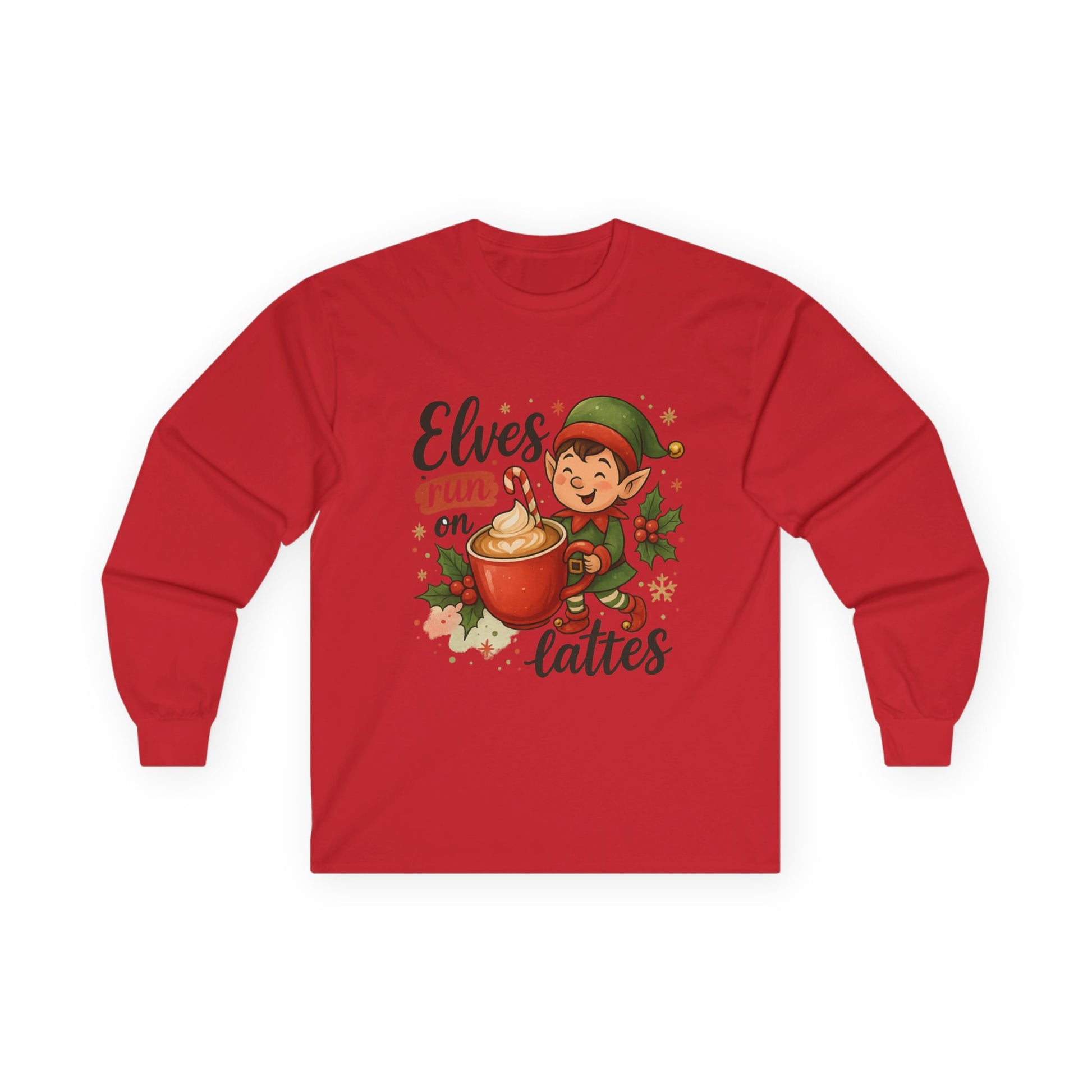 Christmas Elf Long Sleeve Tee, Holiday Shirt, Gift for Coffee Lovers, Festive Apparel, Elf-Themed Clothing