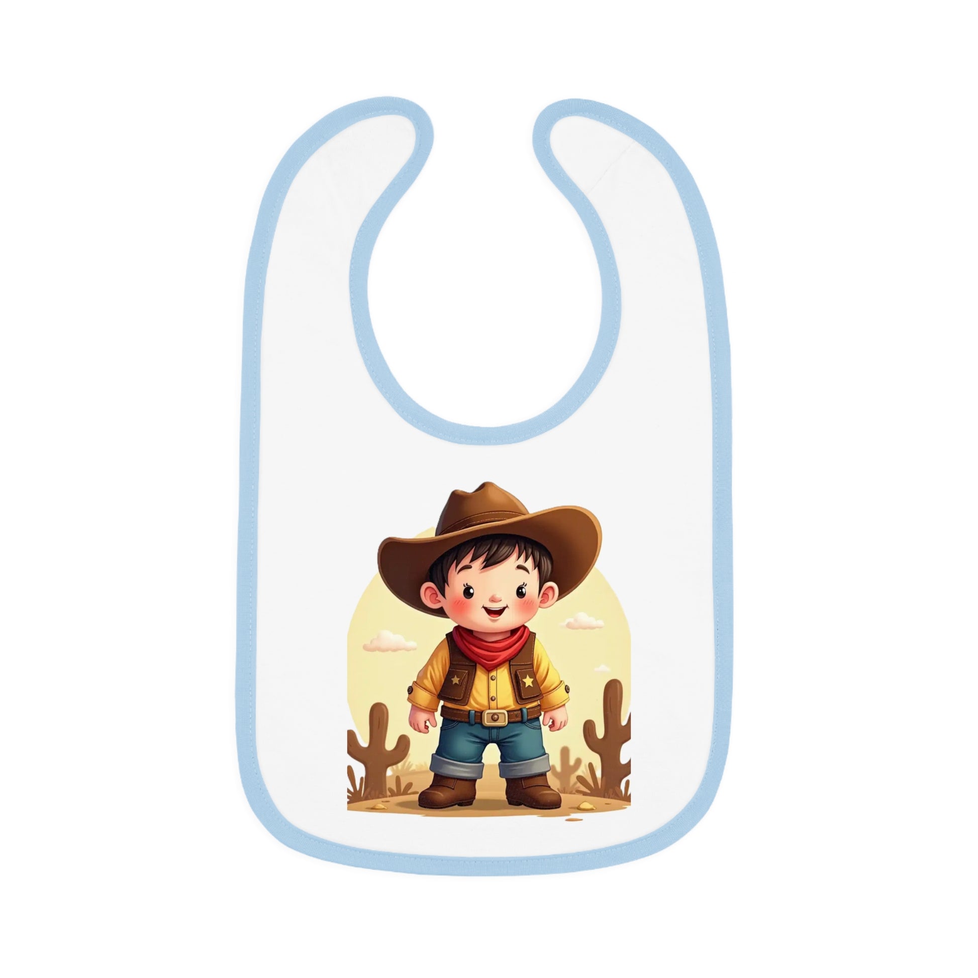 Cowboy Baby Bib with Contrast Trim, Cute Toddler Bib, Western-Themed Baby Gift, Infant Feeding Bib, Baby Shower Gift